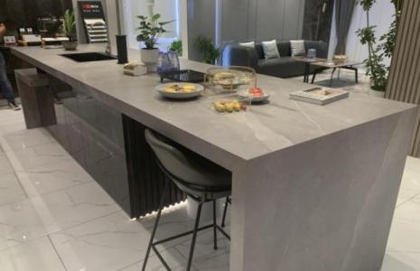 常州业主在装修时,厨房中岛台经过千挑万选,最终用了岩板一线品牌顺辉天成岩板的阿曼尼浅灰产品,作为家装市场的宠儿,这款产品规格是1600*3200*12mm,最大特点是哑面工艺,三片连纹,非常有质感,应
