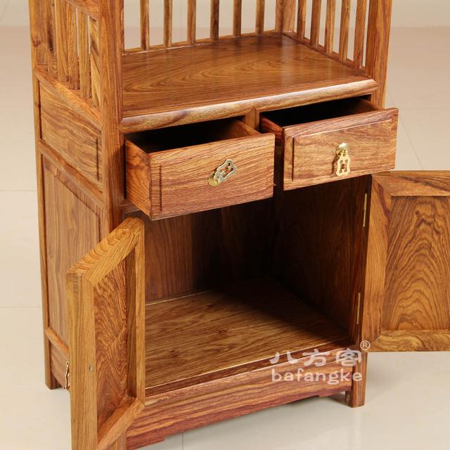 采用紫檀木打造,木纹清新,有着来自自然的美感,整体以榫卯处理,外表美观,结构牢固,镂空式的柜门,取放物品更加方便,优质的材料,为你的爱家保驾护航。