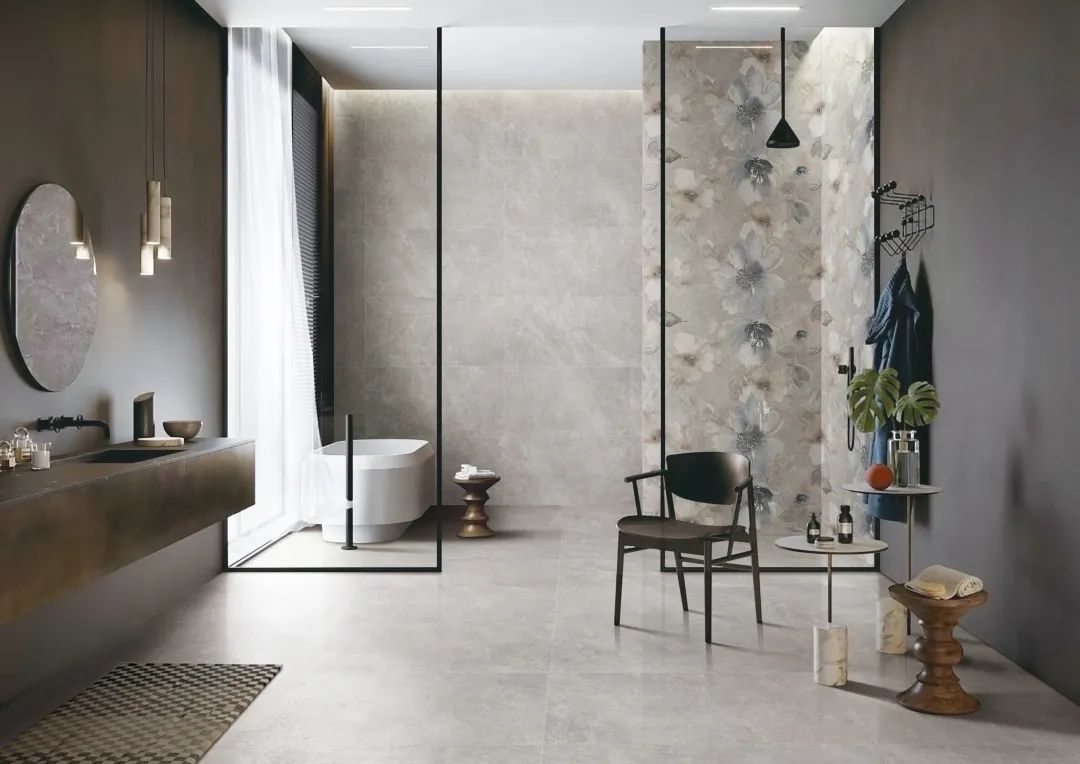 Tiling blends in more tonal on the foundation of gray tone,