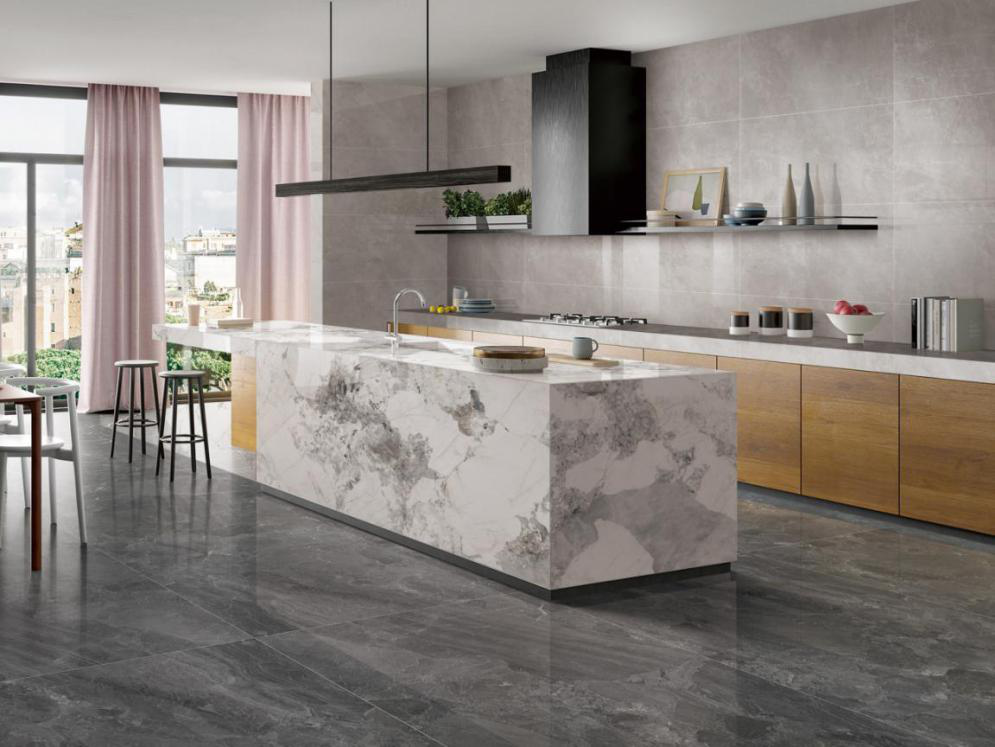 浅灰色调淡雅柔和,微风轻抚水面,河水缓缓流动,伊莉莎白把这刻柔情的画面复刻砖面,形成灵动的石材纹理。400*800mm墙砖“塞纳河”,一石两面,同时具有亮光面和哑光面两种选择。