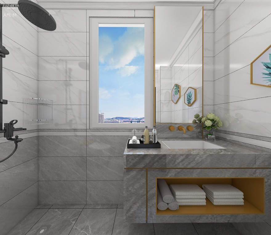 卫生间墙面 | 卡拉拉 ECP60302 + 卡里姆灰 ECP60304
