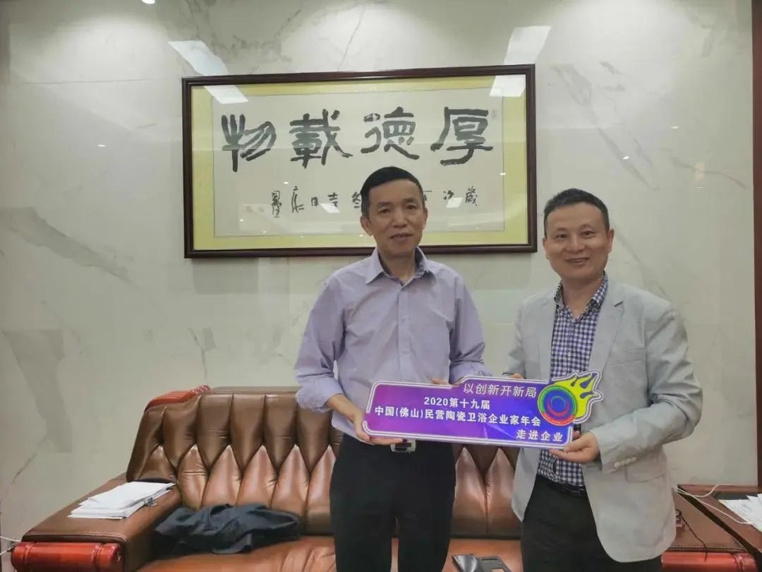 罗曼缔克董事长刘胜红和佛山市陶瓷行业协会秘书长罗青合影