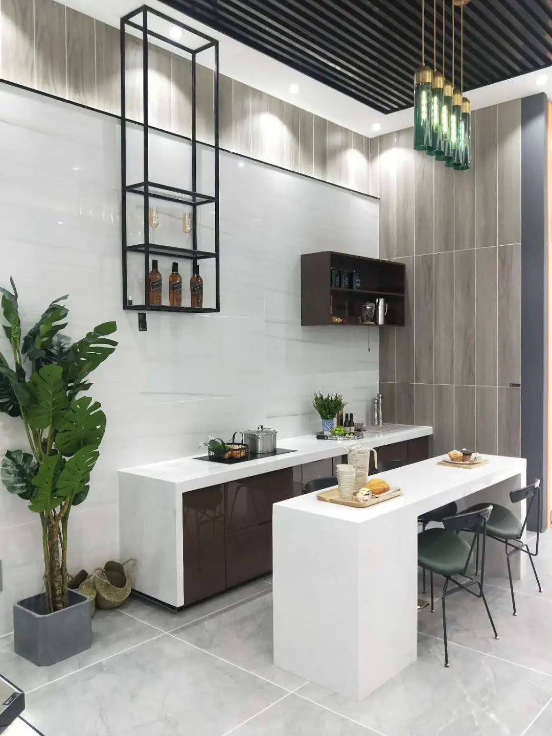 400x800mm、300x800mm亮光墙砖打造的现代开放式厨房,美美的简约风,在这样一个厨房烹饪佳肴,从此做饭也成了一种乐趣。