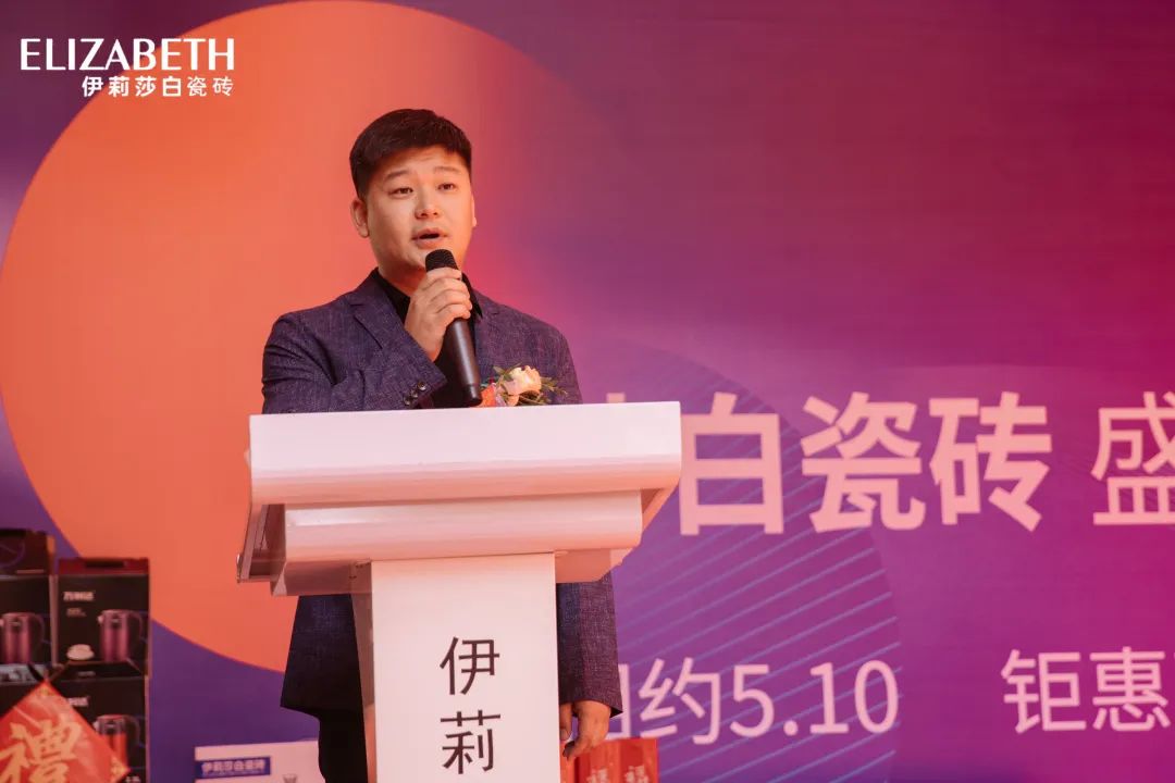 Gaocheng ELZIABETH CERAMICS distributor Wang Hanshuo delivered a speech. Mr. Wang expressed his heartfelt thanks to the guests who came to participate in the opening of Gaocheng store today. Mr. Wang mentioned that during the opening period, Gaocheng store launched a series of Huimin After the introduction of the policy and promotion policy, many owners and friends received a warm response. To this day, the Gaocheng store has received 70 orders, all of which are inseparable from the support of consumers.