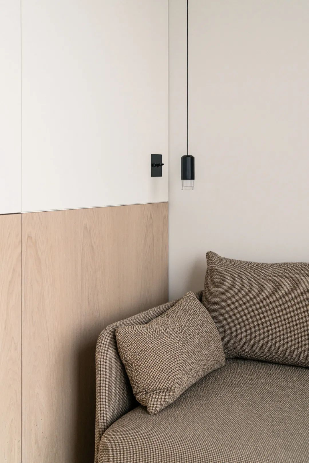 大面积的灰色和木色运用,营造出卧室的静敛氛围,并为安静的休憩提供了保障。