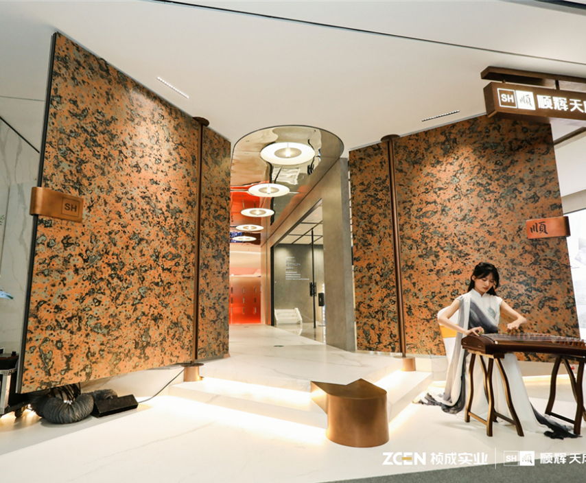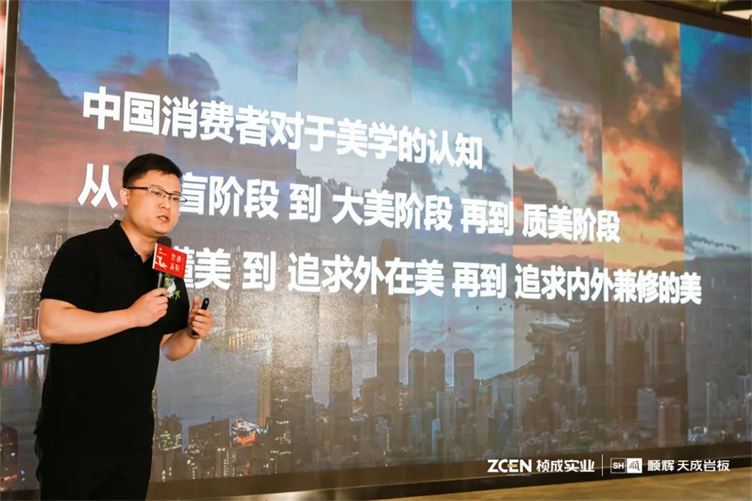 杭州桢成实业有限公司董事长、顺辉天成岩板杭州运营中心负责人 廖绍塔先生在致辞中表示:历经半年的时间,今天顺辉天成岩板东方美学馆终于落成开业,新店突破了传统的展厅的设计手法,集东方人文元素传承、新科技新材料应用、建筑美学表达、未来空间视觉打造为一体,展现着顺辉天成岩板的品牌实力与整体形象,更展现着顺辉天成对于岩板未来应用空间的探索成果以及深度思索。